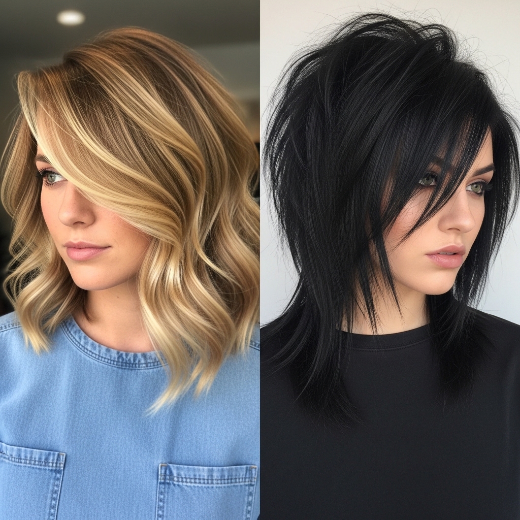 You might see these terms together. The vampire haircut is a specific type of asymmetrical lob, but it’s usually more dramatic. Think sharper layers, more texture, and a darker, moodier color vibe.