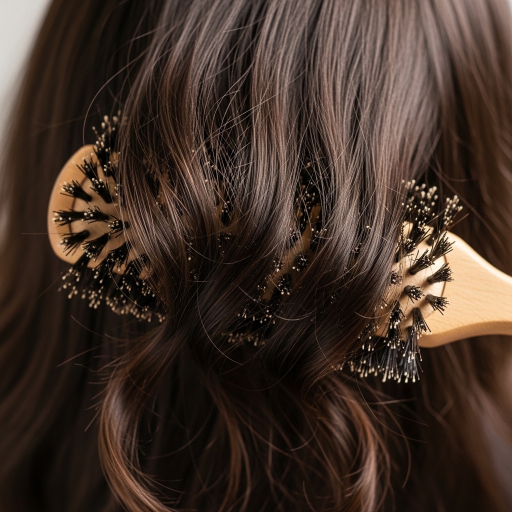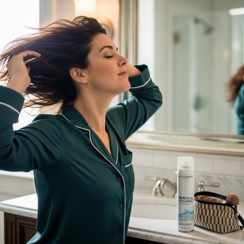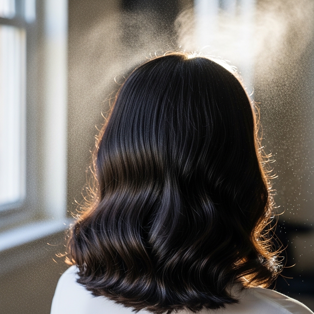 Hold is important, but we don’t want shellac. From about 10 inches away, mist a flexible-hold hairspray all over. Focus on the mid-lengths and under-layers to fight frizz without making the top crunchy.