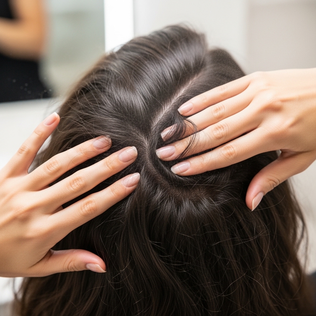 Use the end of a comb or your finger to carve out a clean, deep part. It doesn’t have to be razor-straight—a slightly soft, blurred part line works perfectly with our theme. This sets the stage for everything that follows.