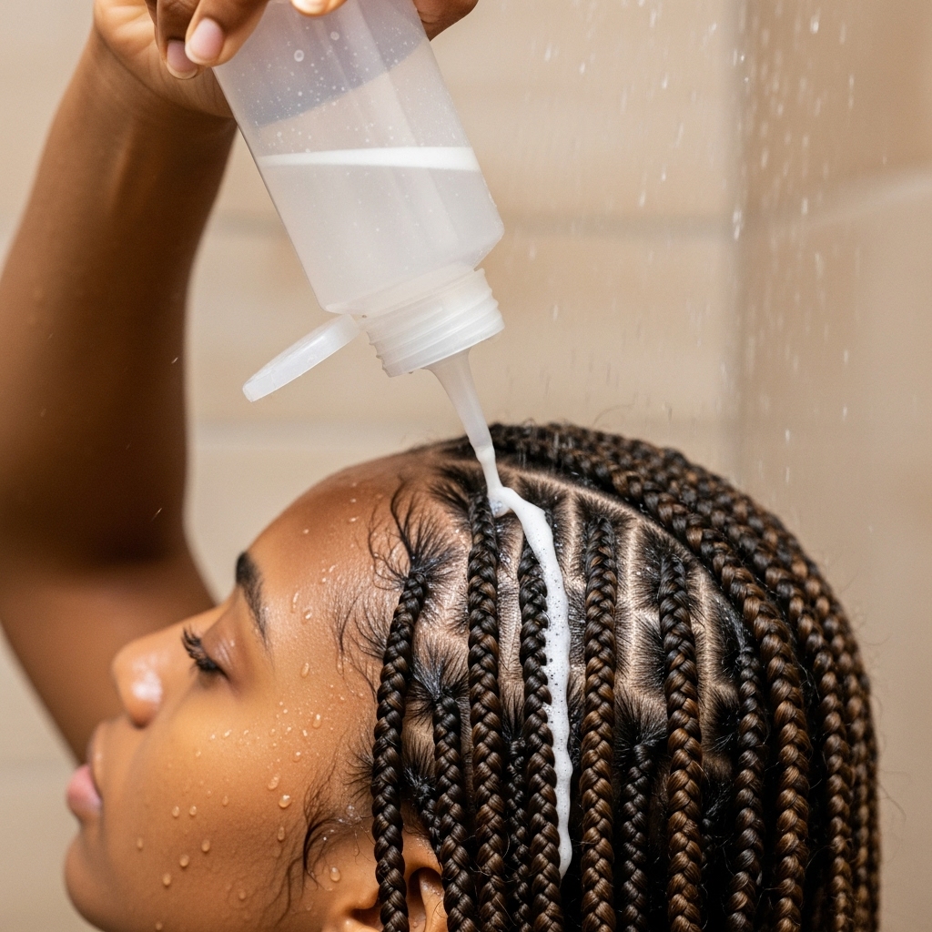 You don’t have to wait until your braids are taken out to wash your hair. In fact, a targeted scalp cleanse can be a game-changer for long-term freshness. Dilute a gentle shampoo with water in an applicator bottle. Part your braids in sections and apply the diluted shampoo directly to your scalp, massaging gently with the pads of your fingers.