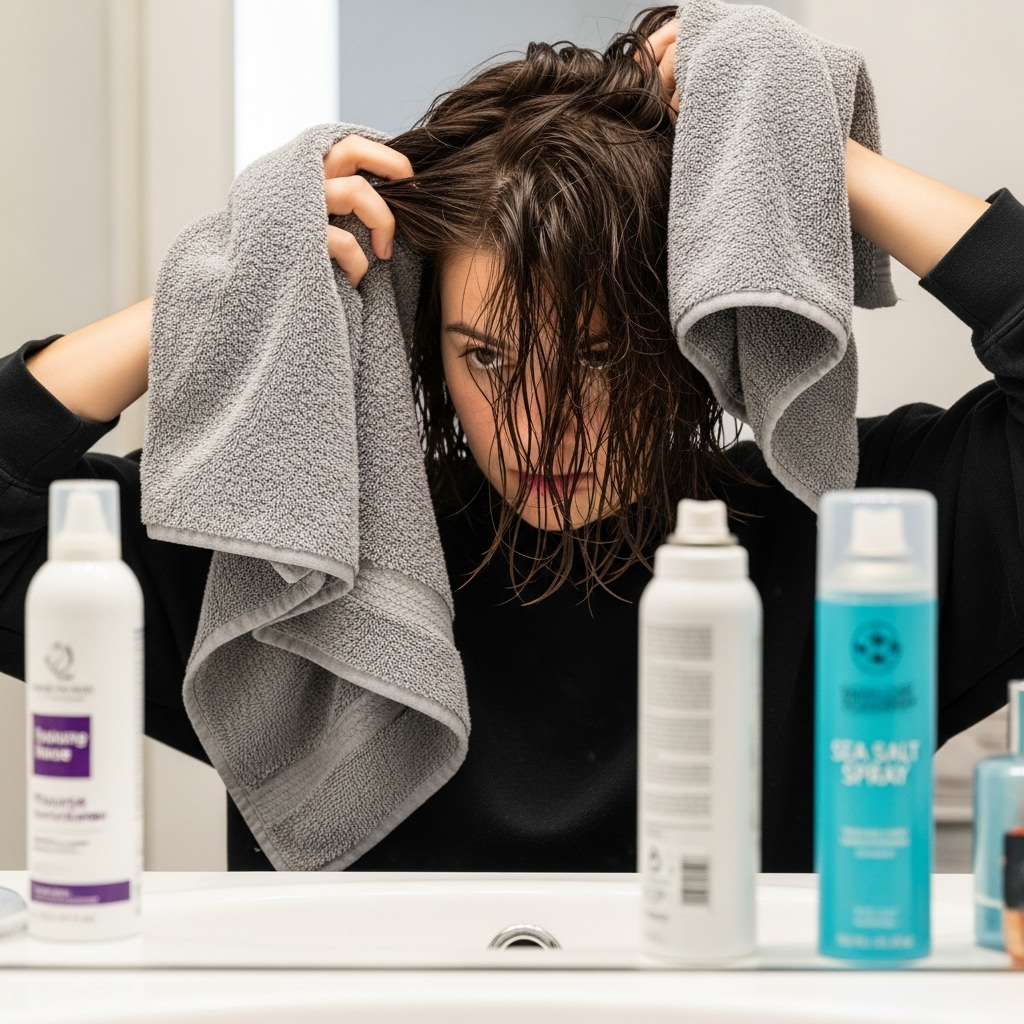 Now, while your hair is still very wet, this is your prime styling window. Apply a pea-sized amount of a lightweight mousse or a few spritzes of your sea salt spray from mid-lengths to ends. Then, flip your head upside down and scrunch your hair upwards towards your scalp. This encourages your natural wave and creates volume from the root. If you have time, you can let it air-dry completely from here. If you’re in a rush, you can use a diffuser attachment on your blow dryer on a low heat and speed setting, continuing to scrunch as you dry to enhance texture.