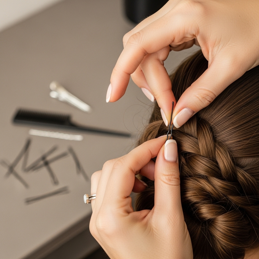To Hide the Bobby Pins: Always insert bobby pins with the wavy side down against your scalp. This provides the best grip. To hide them, slide the pin into the base of the updo and then gently twist a small piece of hair over the visible part of the pin to conceal it.