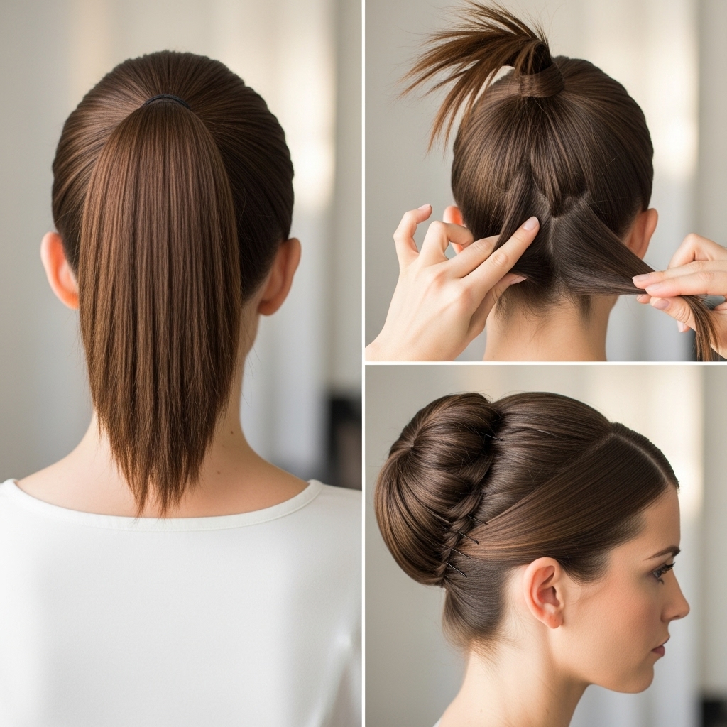 The Sleek and Slicked-Back Updo: This is a high-fashion take. Apply a strong-hold gel or pomade to damp hair and comb it back into a severely high ponytail, ensuring not a single flyaway is present. Then, create a tight, angled bun. It’s a powerful, minimalist look that commands attention.