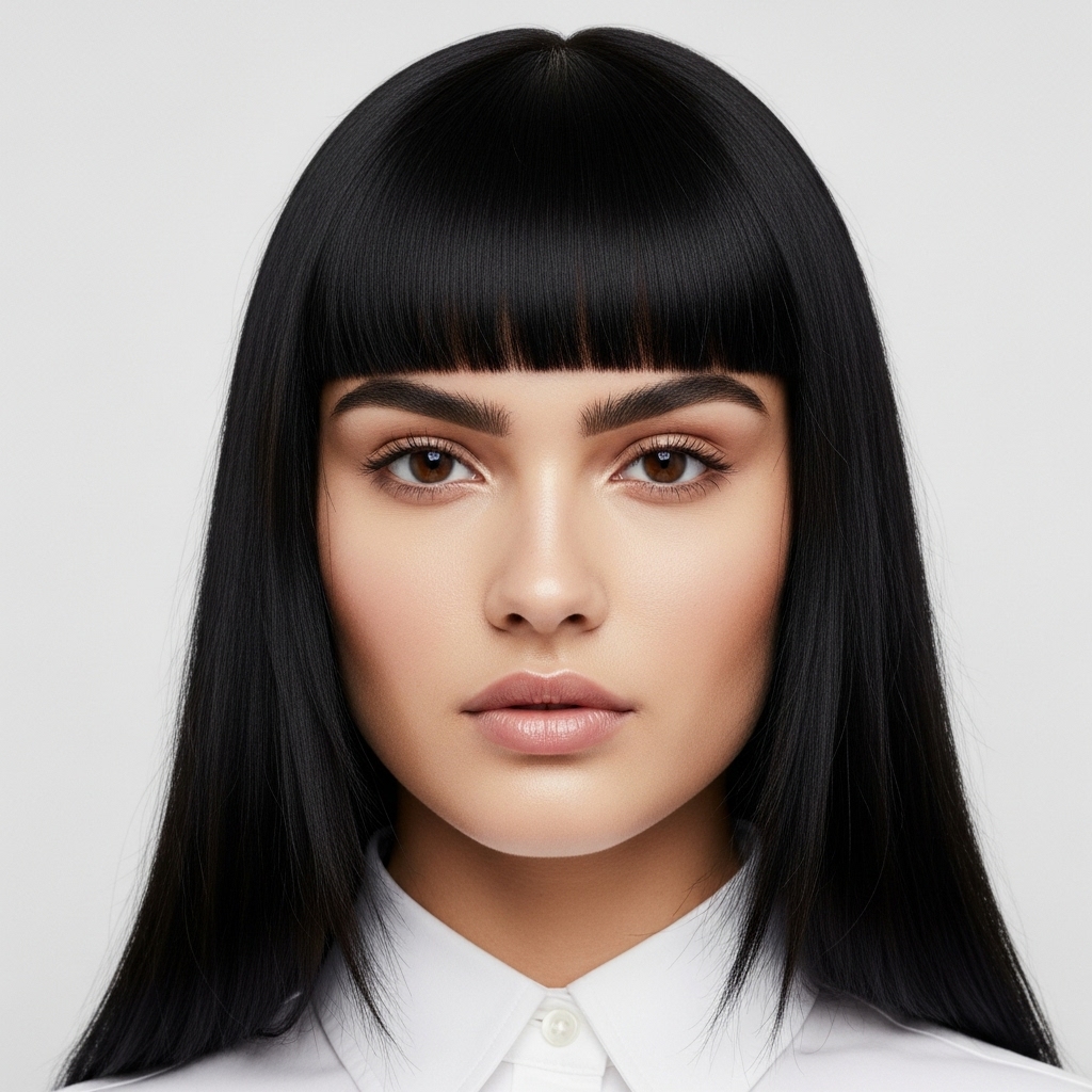 Blunt Bangs: For a bold, statement-making look, blunt medium bangs are your go-to. Cut in a straight, heavy line across the forehead, they offer a graphic, modern edge. This style works wonderfully with thick, straight hair and can look stunning on those with oval or long face shapes, as they can help shorten the appearance of the face.