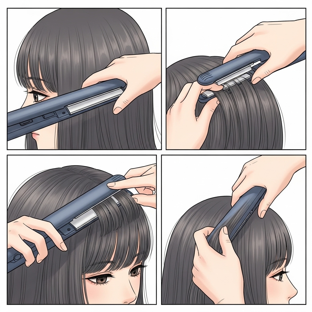 The Flat Iron: For a super straight, sharp look or to add a slight curve at the ends, a flat iron is your best friend. Ensure your bangs are completely dry first. Clamp the iron at the root, pause for a second, and then slowly glide it down the length of the hair. To create a subtle, face-framing bend at the ends, twist the iron slightly outward as you reach the tips.