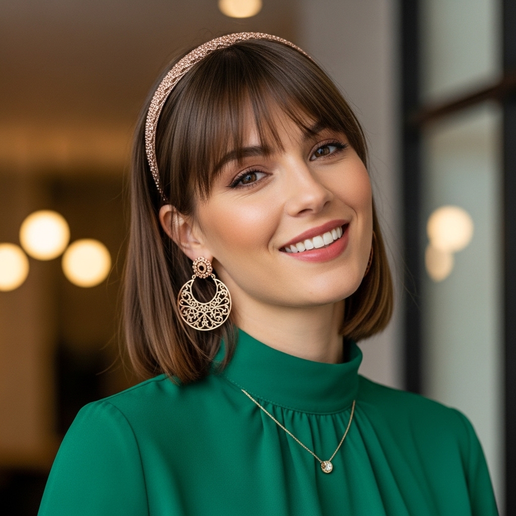 Your new bangs are the ultimate accessory, but you can pair them with other accessories to create even more stunning looks. A sleek, oversized headband can give you a 60s-inspired, mod vibe. Pretty clips and bobby pins can be used to pin one side back for an asymmetrical look. Even your choice of earrings becomes more prominent, as bangs beautifully frame your eyes and upper face, drawing attention to your statement studs or hoops.