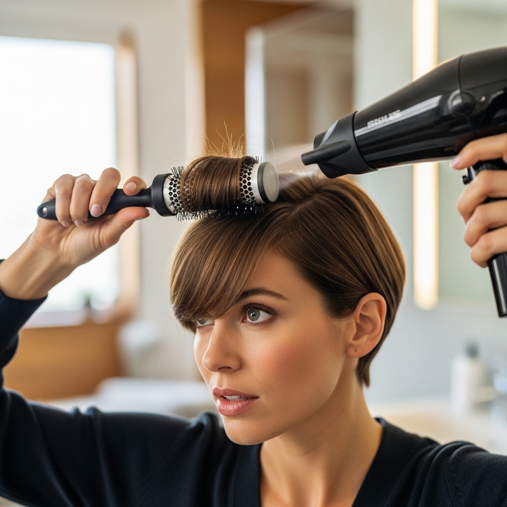 While air-drying is an option, mastering a quick blowout will elevate your pixie game to professional levels. The goal is to create volume and direction.