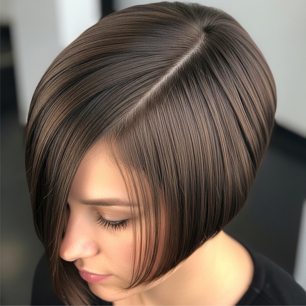 For a bold, modern look, go super sleek. Create a deep side part—this accentuates the asymmetry in the best way. Use a fine-tooth comb and a strong-hold smoothing cream before flat ironing.