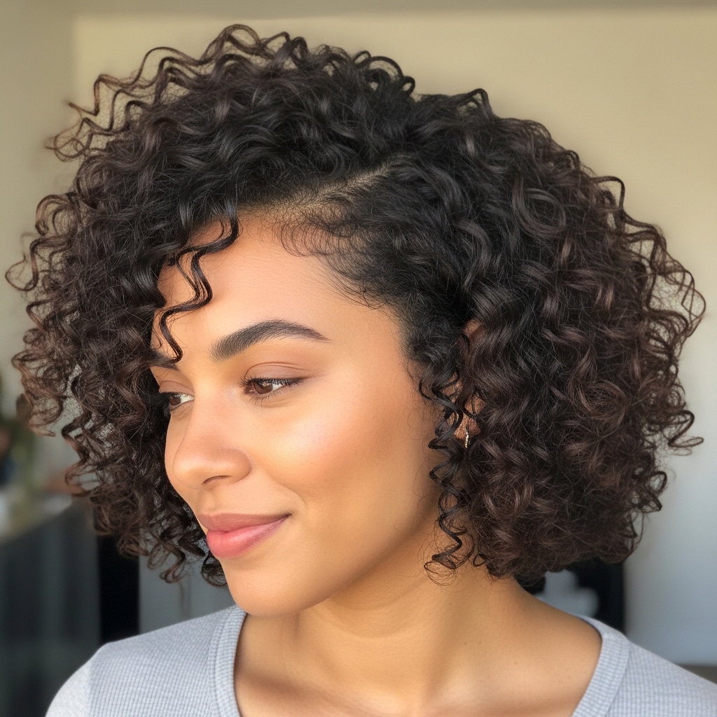 Don’t touch while drying! Once dry, you can “scrunch out the crunch” from the gel. The asymmetry will naturally make your curls look more dynamic and modern. Focus on keeping the shorter side’s curls springy and defined.