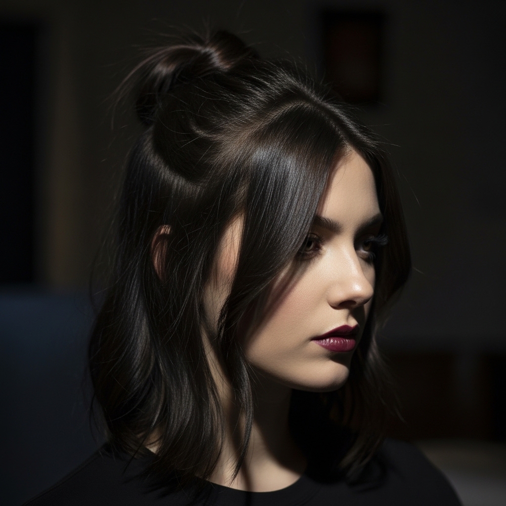 Yes, your lob can absolutely tap into romantic goth hairstyles. It’s softer than a full vampire haircut but has that same darkly romantic feel. Take just the top section of your hair, from about your temples back.