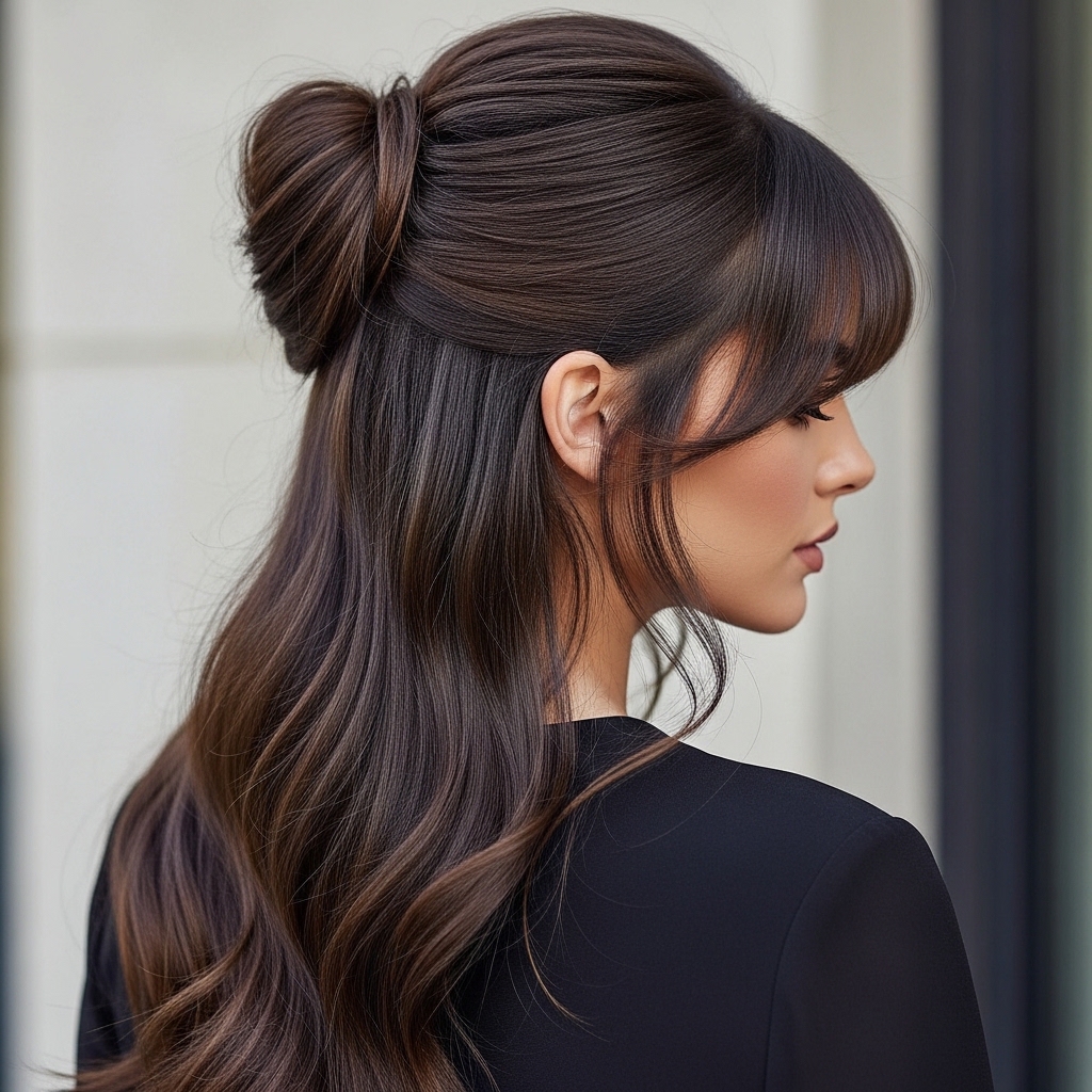This is a gorgeous way to show off the cut. Gather just the long back hair into a low, loose ponytail or bun at your nape, leaving all the front hime pieces and bangs completely free.