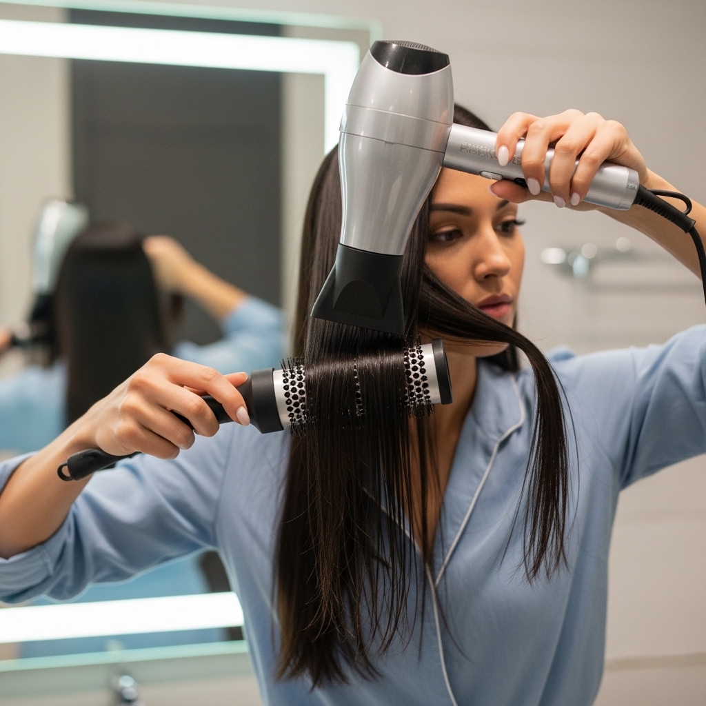 I like to blow-dry my hair straight down, using a round brush to smooth out any bumps. This step eliminates any surprise waves or kinks that could mess with your crisp lines later. It’s the foundation for everything.