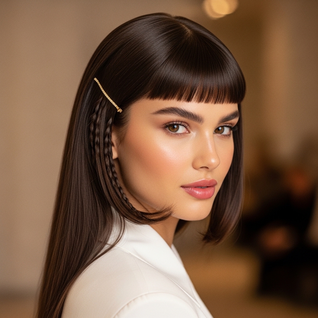 The modern twist—what we’re loving—softens all those lines. The fringe gets wispy, the sidelocks blend more, and the overall vibe is less “warrior princess” and more “effortlessly cool.” It’s a nod to the vampire haircut trend but way more approachable.