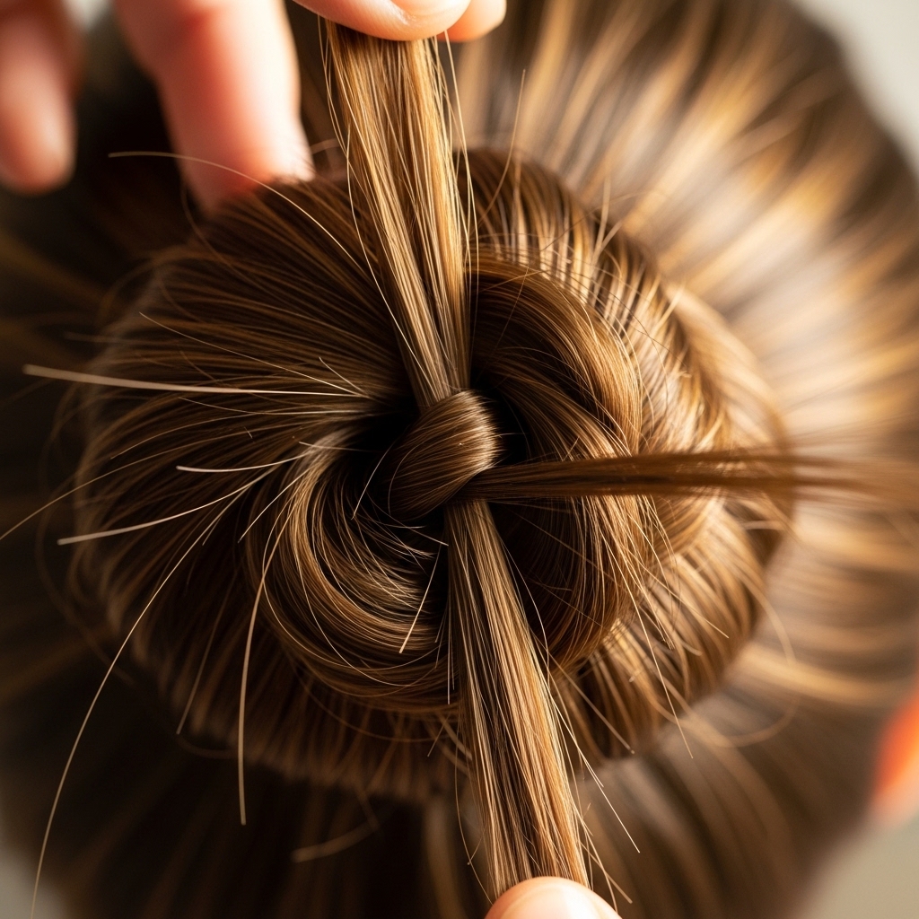 Take that thin strand you just pulled loose. Gently guide it under the bun, coming up on the opposite side. Think of it like you’re threading a needle, but the bun is the fabric.