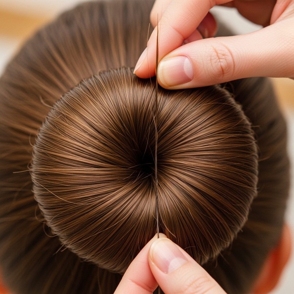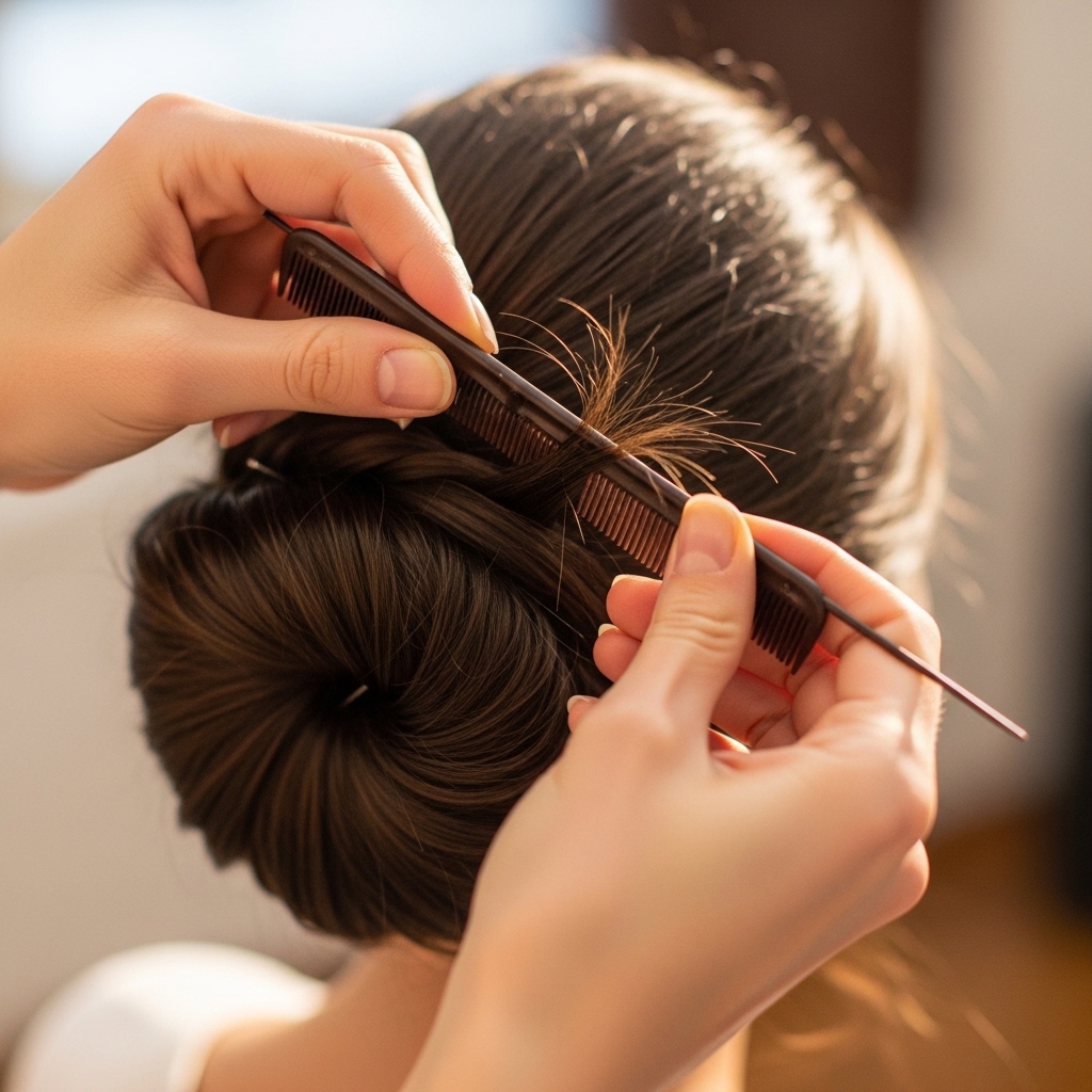 This is the magic step. Take your fine-tooth comb. Gently pull out a very small, thin section of hair from the edge of the bun. Think “one single strand of spaghetti,” not a whole chunk.
