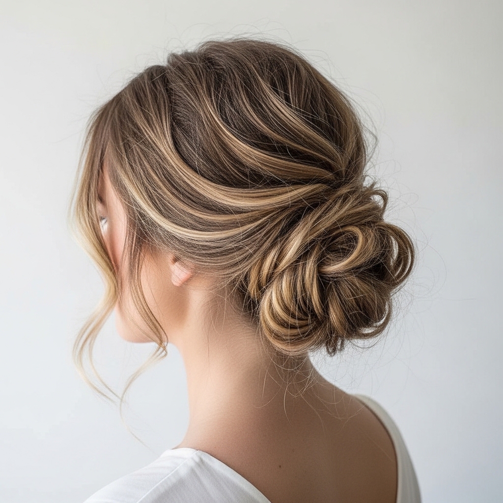 If your dress has a lot of detail at the shoulders or chest, the clean elegance of this low bun balances it perfectly. It never competes with your outfit; it only enhances it.