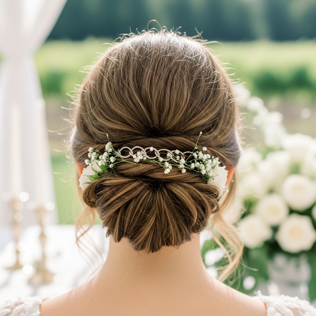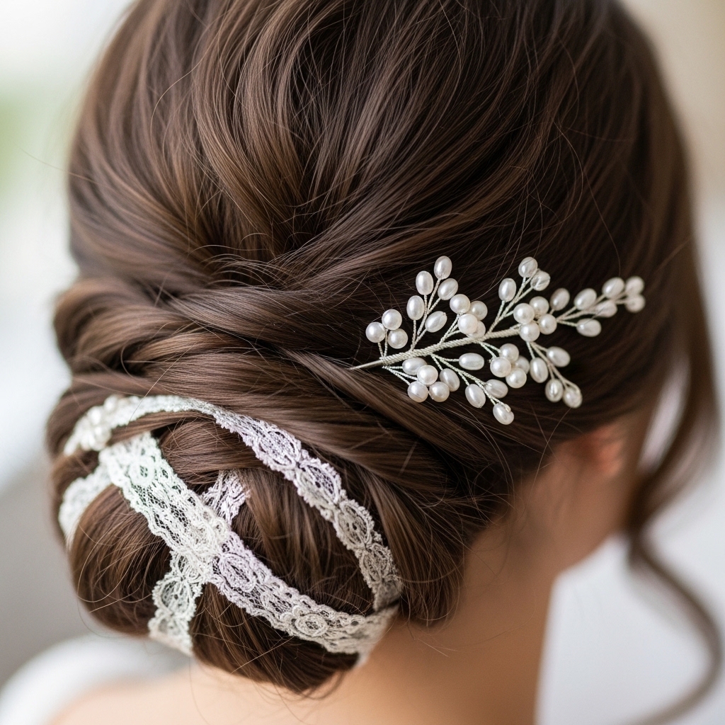 Less is more. Choose one statement piece or a few tiny, scattered pins. The hairstyle itself is a detail, so you don’t want to overwhelm it. Place the accessory where a lace strand meets the bun for a cohesive look.