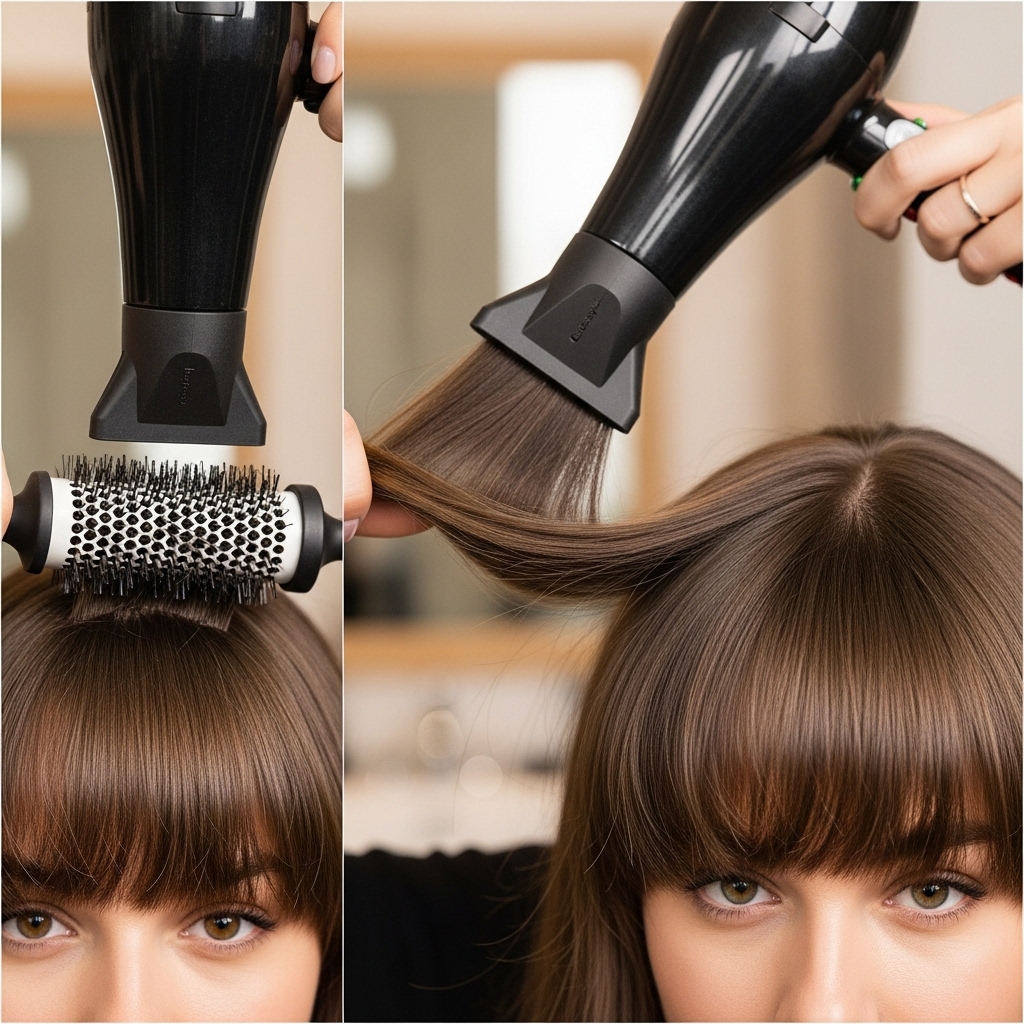 A Round Brush: The diameter of the brush matters. For medium bangs, a medium-sized brush (about 1.5 to 2 inches) is perfect for creating a soft, bouncy curve or a smooth, straight finish. Look for one with a mix of boar and nylon bristles for the best grip and smoothing power.