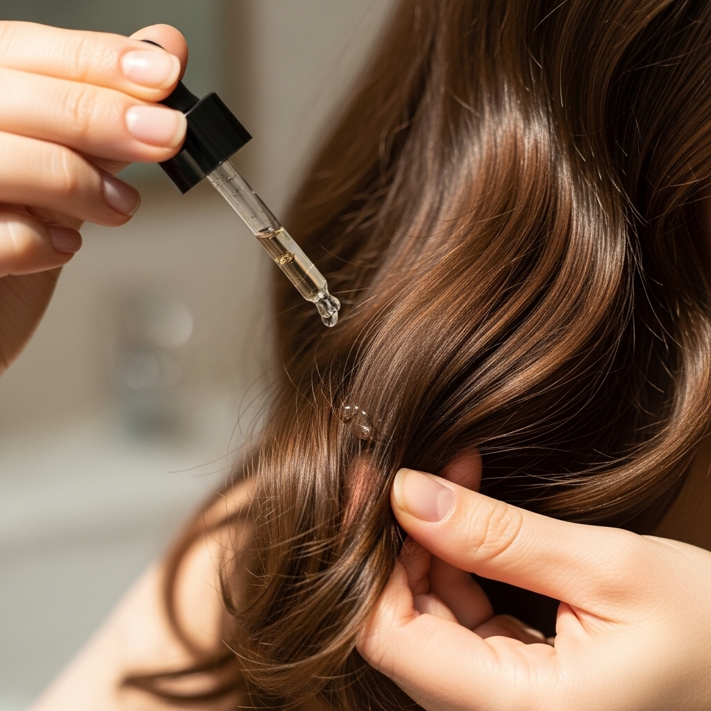 Shine and Frizz Control: A single pump of a lightweight hair oil or serum, emulsified in your palms, can be run over the surface of your hair to tame flyaways and add a gorgeous, healthy shine. Avoid the roots to maintain volume.