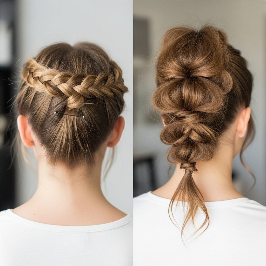 The Half-Up Crown: Take a section of hair from each temple, braid it loosely back, and join the two braids at the back of your head, pinning them in place. This creates an instant, elegant crown that keeps hair out of your face and looks incredibly sophisticated.