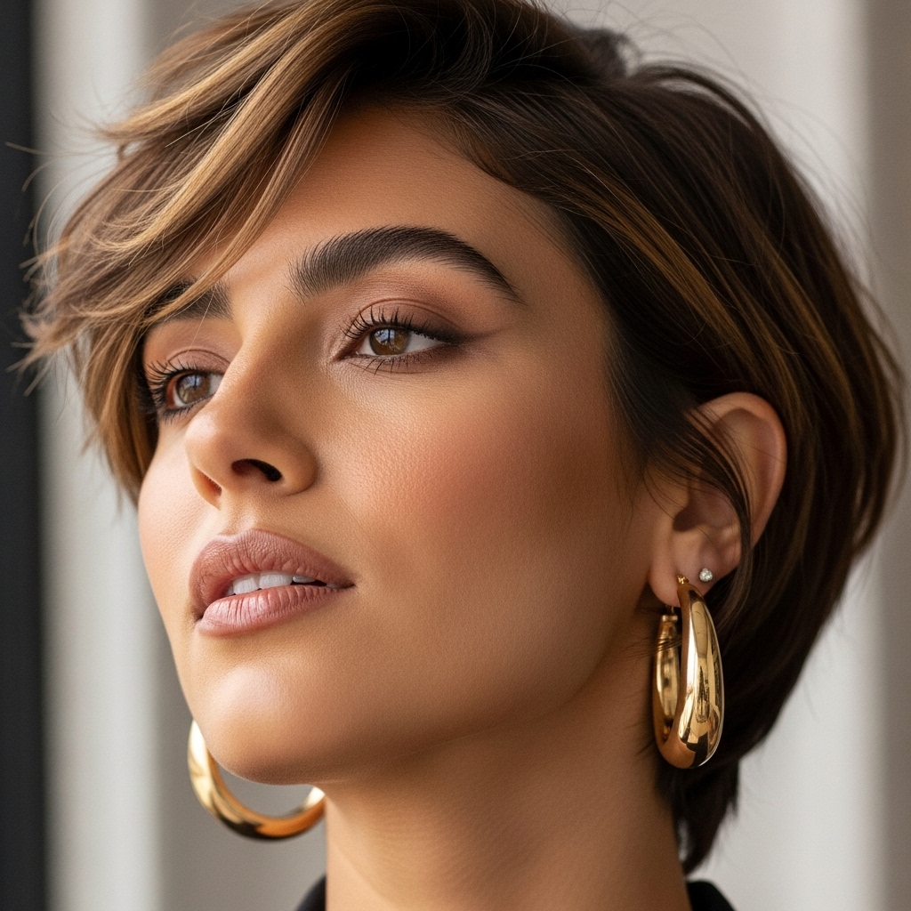 A chic pixie look isn’t just about the hair—it’s about the entire presentation. Accessories are a powerful way to elevate your style and express your personality.
