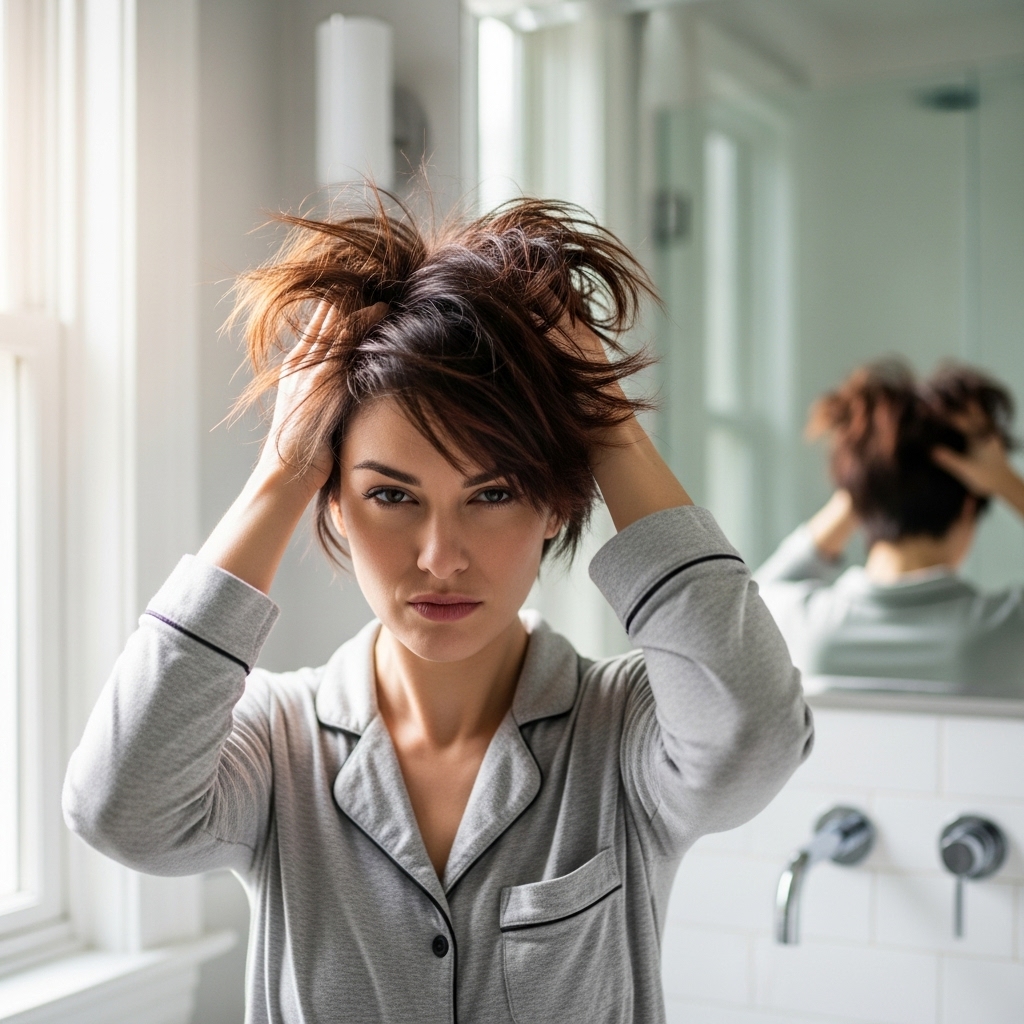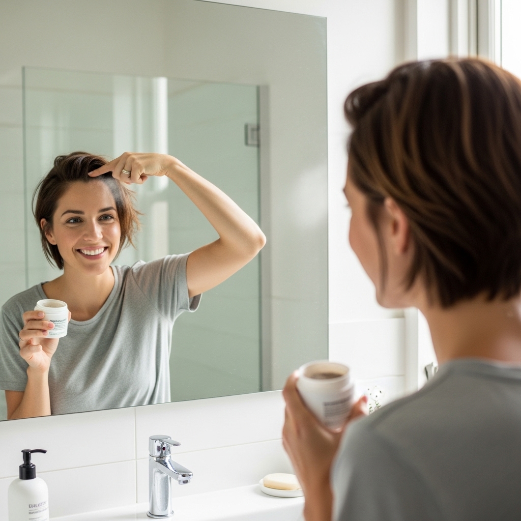 First, don’t brush it! This will only create frizz. Instead, use your fingers to gently tousle your roots and redistribute the natural oils. If your hair has flattened, focus on your secret weapon: texture powder. Part your hair where you want volume, sprinkle a small amount directly onto the roots, and massage it in with your fingertips. You will feel the volume instantly return.