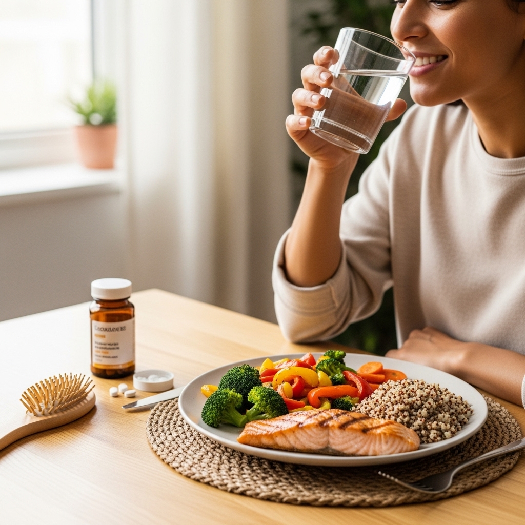 Stay Hydrated: Water supports nutrient delivery to hair follicles.