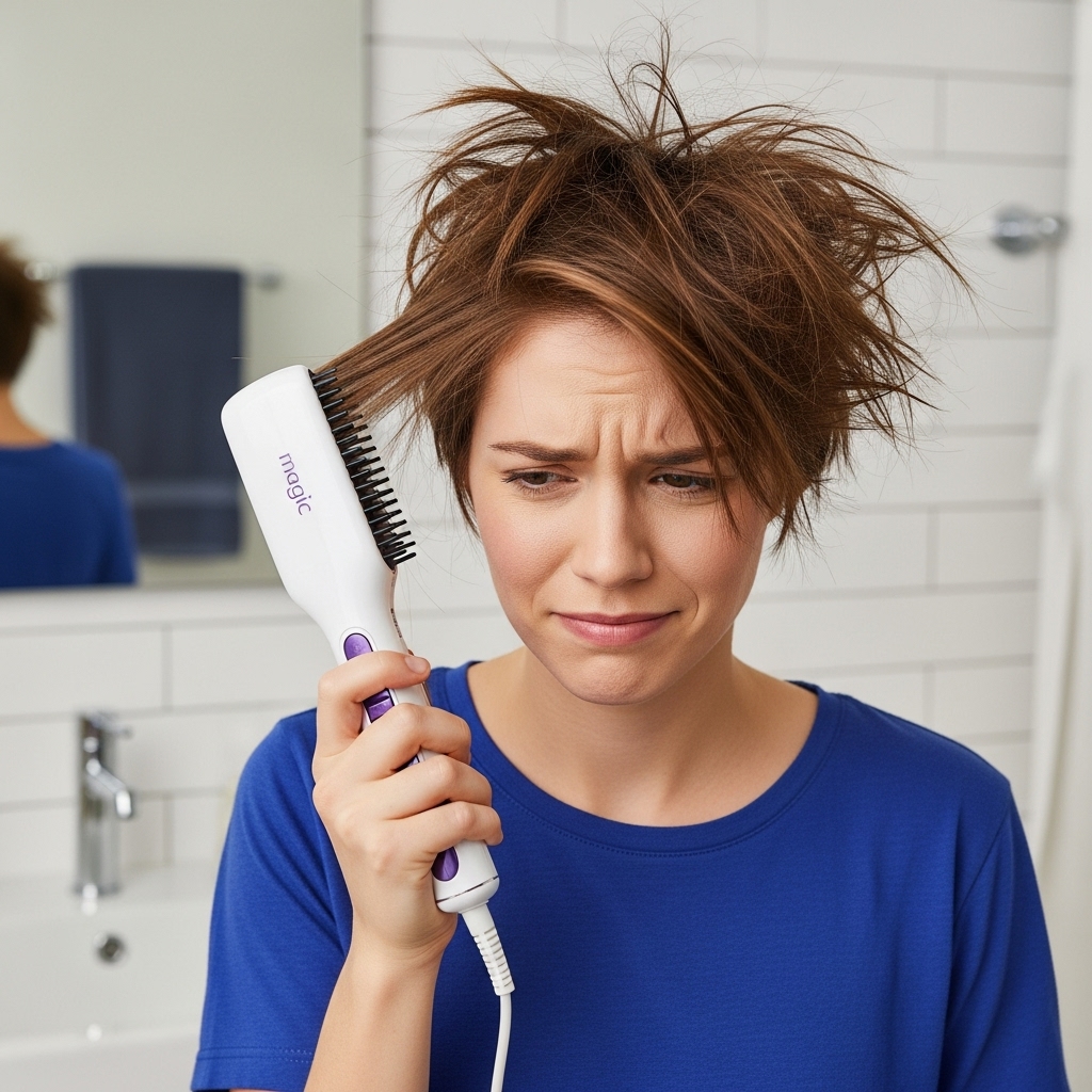 Promising pin-straight hair in minutes, this brush left my hair frizzy and uneven. It struggled with thick or wavy hair, and the bristles snagged constantly. Save your money.