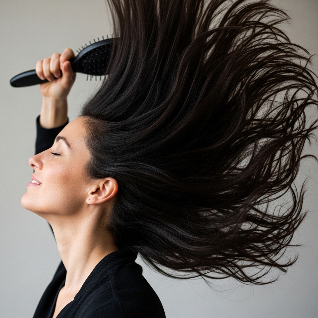 Then, slowly flip your head back up, gathering the hair at the nape of your neck as you go. Use your bristle brush to gently smooth the sides. This technique gives you a seamless, no-part look that is the hallmark of this style.