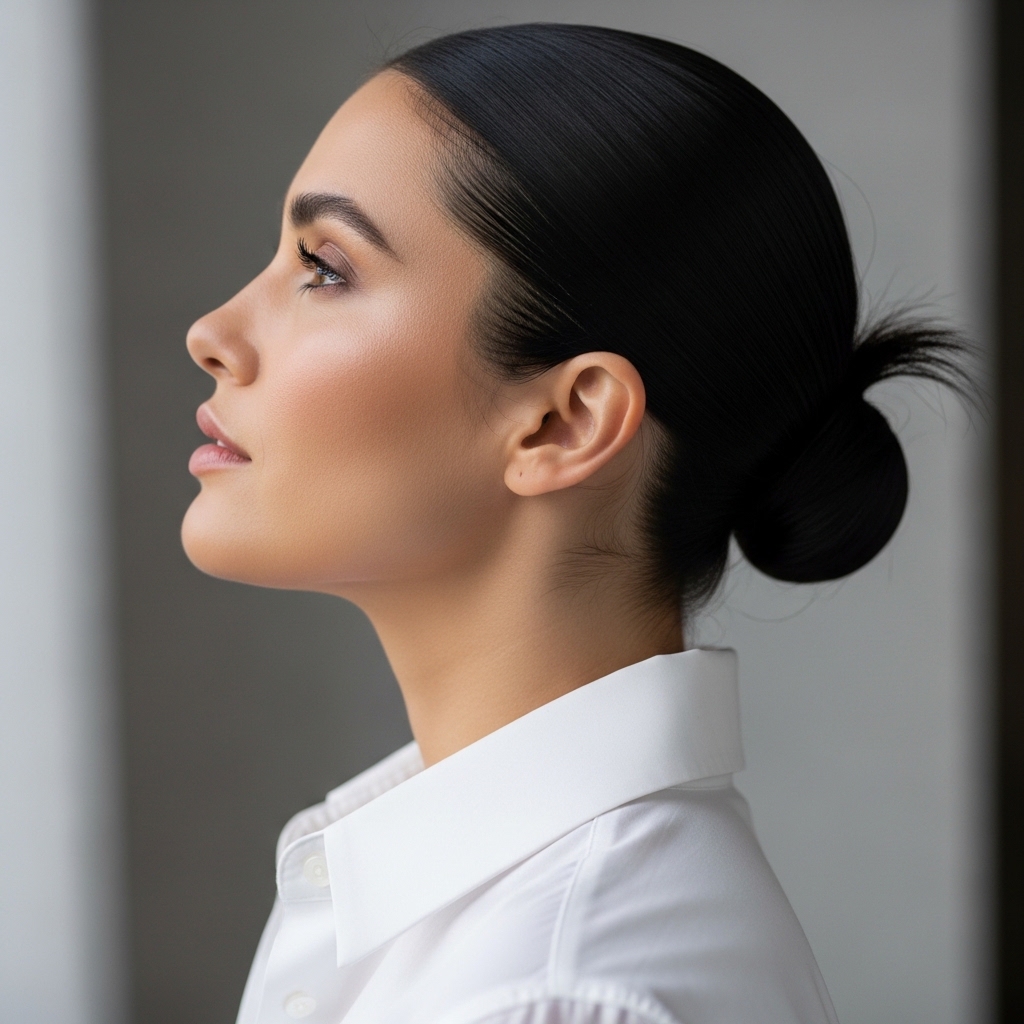 This isn’t your gym ponytail. This is its sophisticated cousin. The placement at the nape of your neck is key. It elongates your silhouette and draws attention to your neck and collarbone. It feels graceful and intentional.