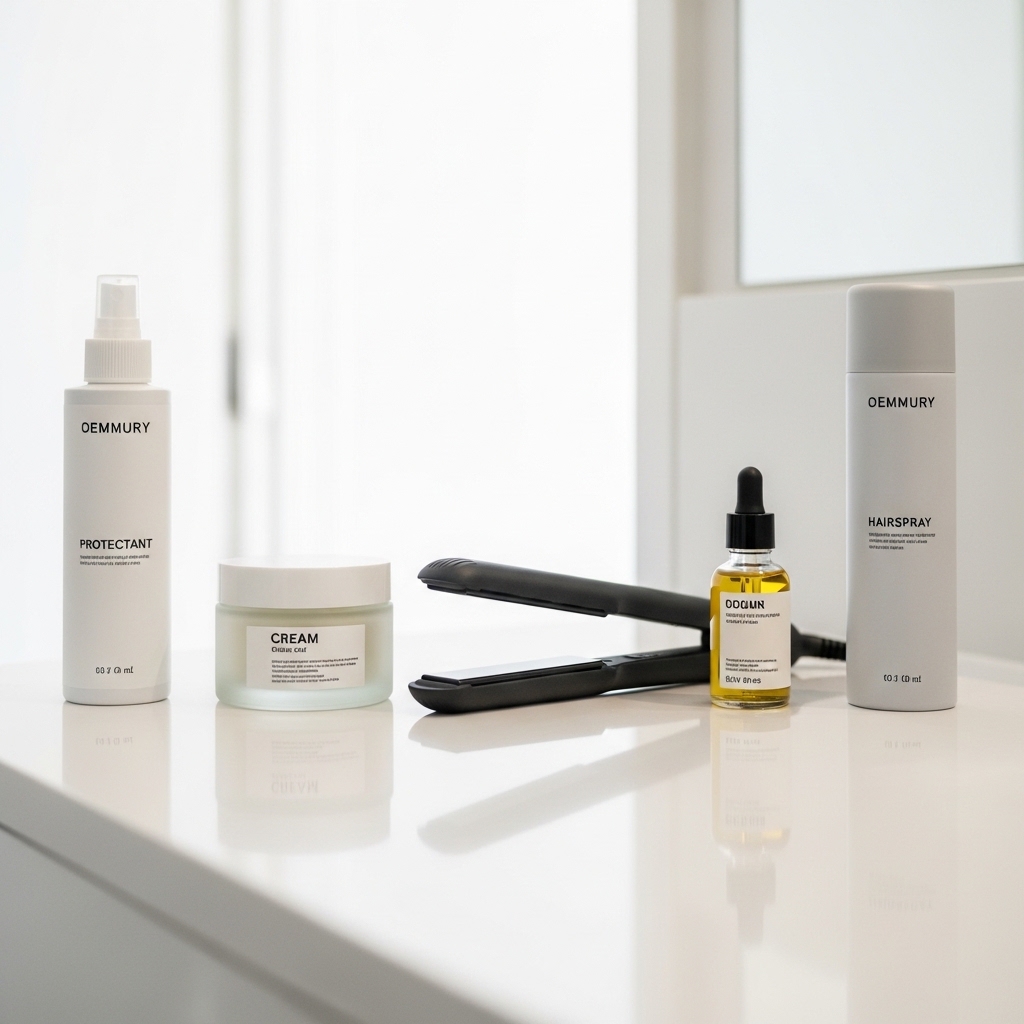 You don’t need a million things. My core kit: a heat protectant spray, a smoothing blow-dry cream, a reliable flat iron, a lightweight hair oil, and a flexible-hold hairspray.