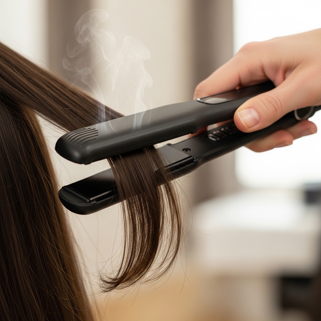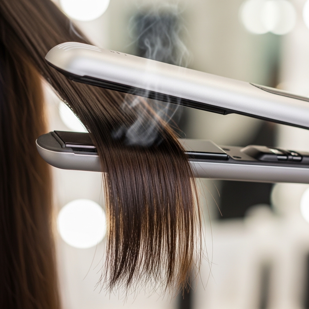 Smaller plates (1 inch) give you more control, especially around the face. The goal is to glide, not clamp and pull. This seals the cuticle for that glass-like shine.