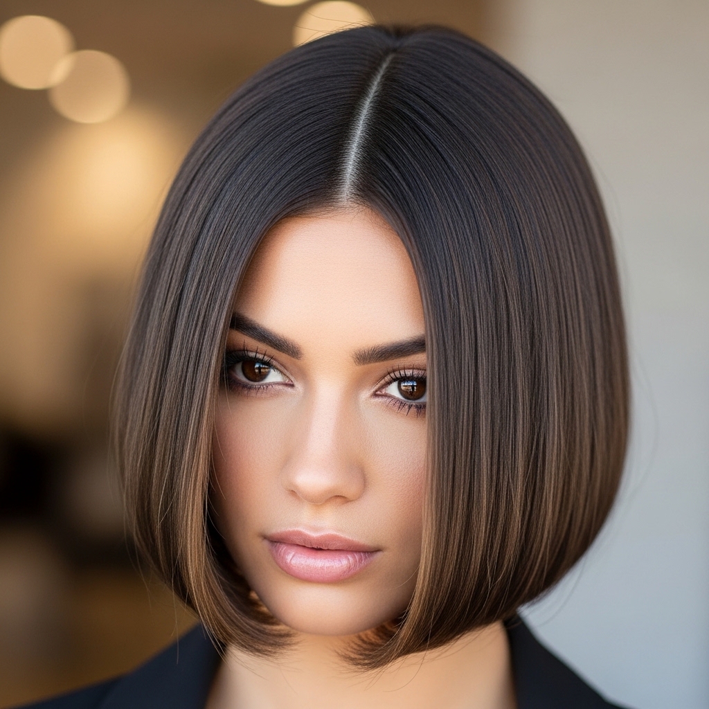 While the asymmetrical lob or vampire haircut has its edgy place, the middle part is your go-to for a pulled-together look. It works with almost every face shape and gives you that clean, graphic line that defines the style.