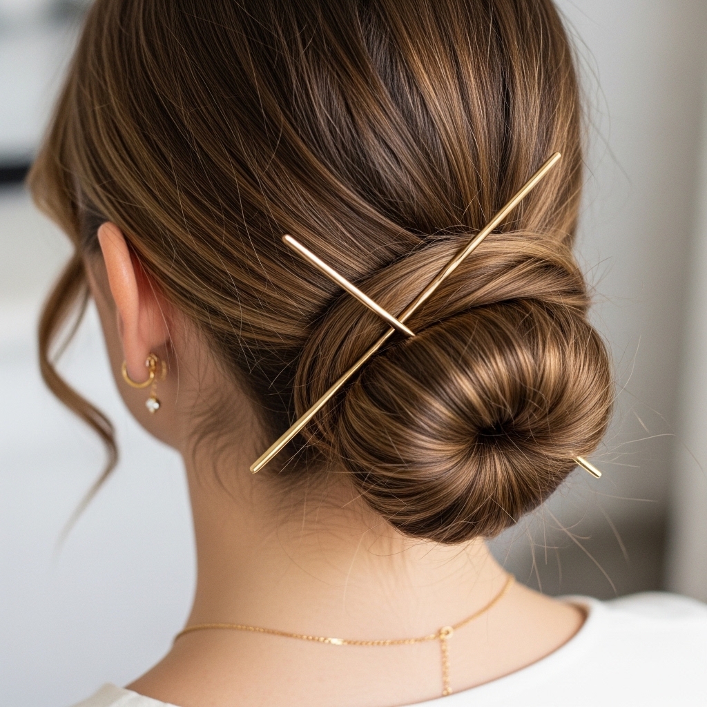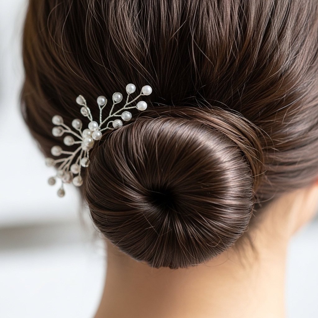 Accessories can elevate this bun in seconds. The key is to keep it subtle, in line with that old money aesthetic. Think about a single, elegant gold hairpin slid diagonally through the bun, or a few tiny pearl-encrusted pins clustered together.