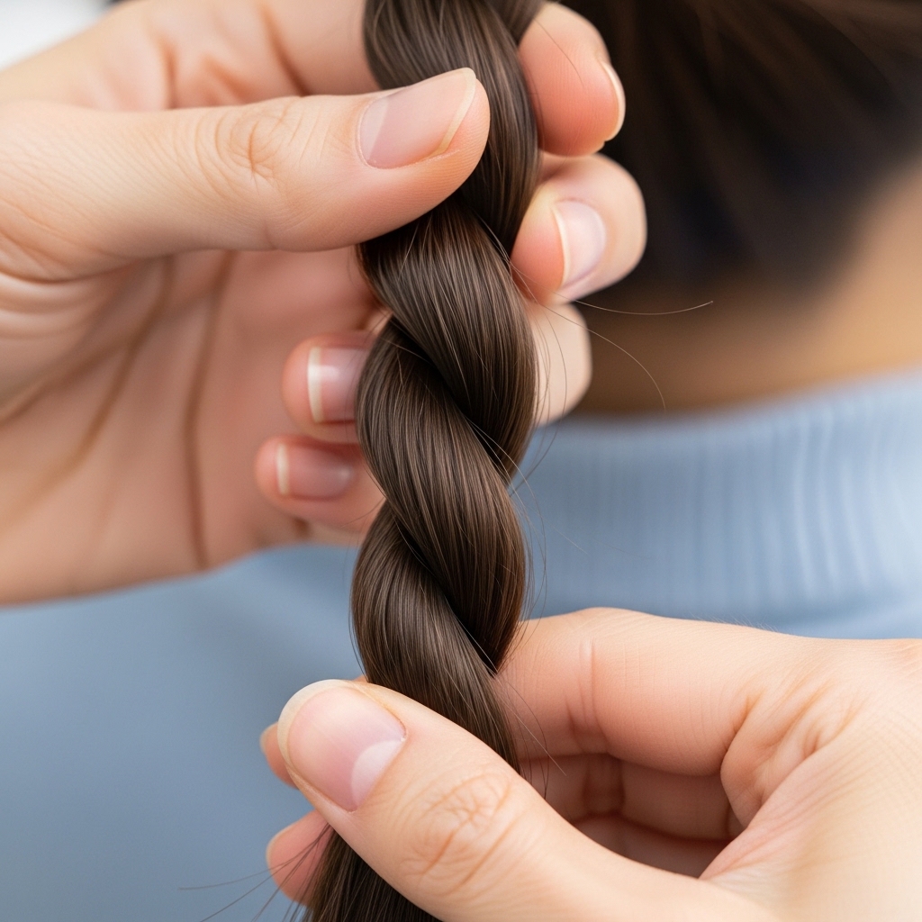 Now, take your ponytail and twist it firmly in one direction—either clockwise or counter-clockwise. Keep twisting until the entire length of hair is a tight, uniform rope. The tension is important here.