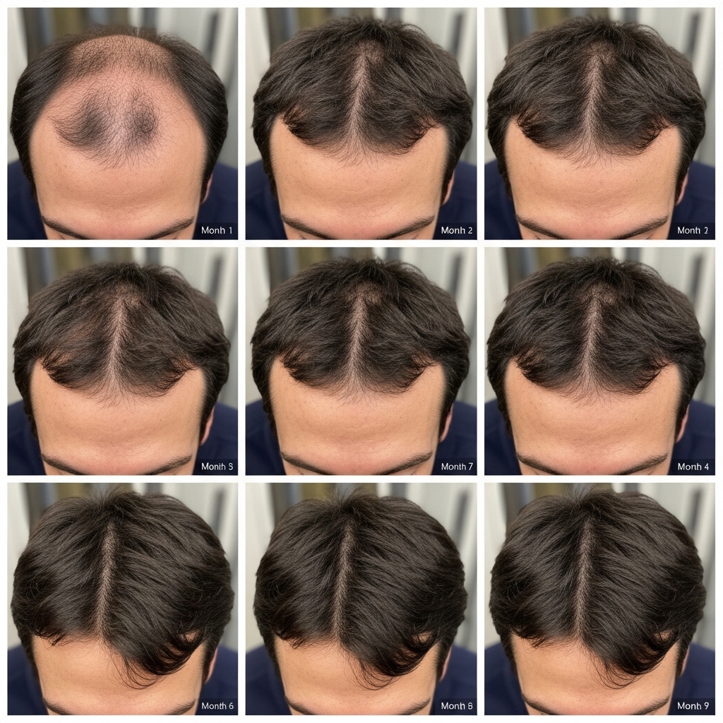 Hair regrowth takes time. New growth may appear fuzzy or short at first. Take monthly photos to monitor changes. Most women see significant improvement by 6-12 months postpartum.