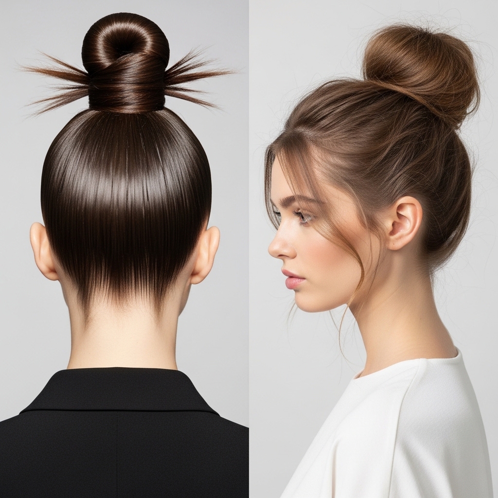 It works with almost every hair trend. Whether you have a quiet luxury bob, an asymmetrical lob, or long layers, a bun adapts. It showcases your haircut’s shape when you take it down, too.