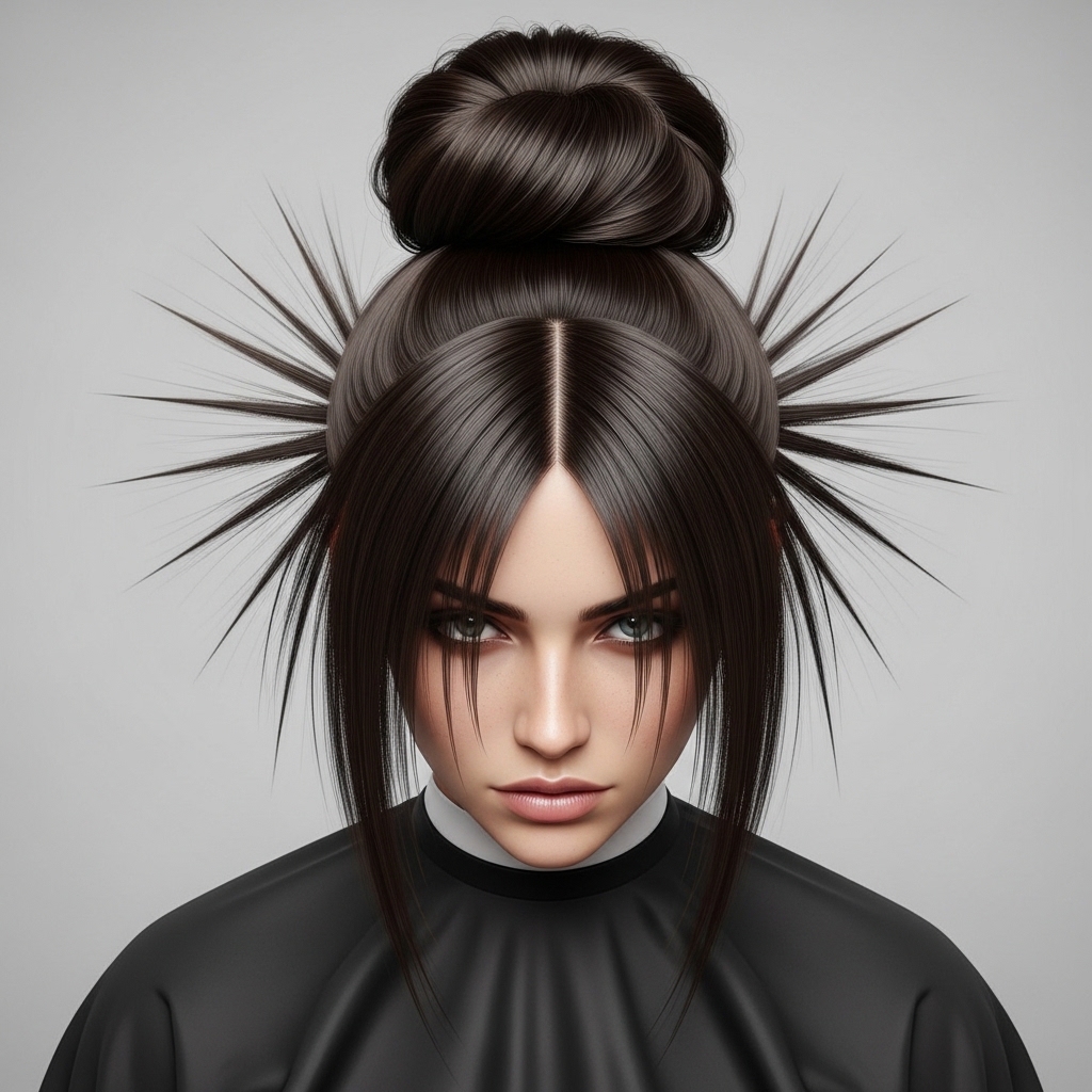 The vampire haircut is all about sharp, dramatic layers. If you have this cut, your bun will be incredible.