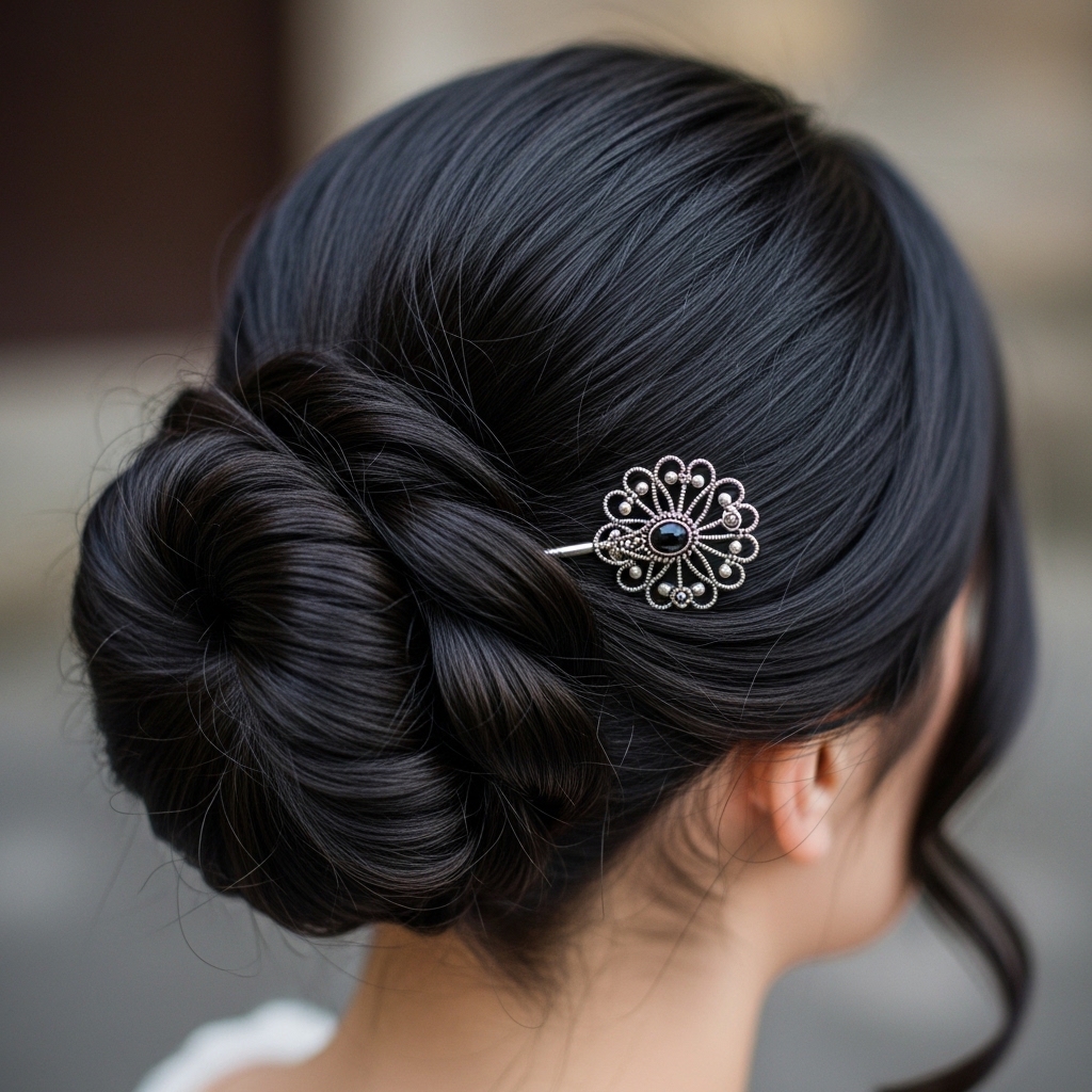 Add a single, elegant accessory—a dark velvet scrunchie at the base, or a delicate silver hairpin. It’s about one statement piece, not many.
