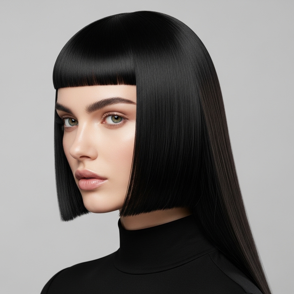 To align it with quiet luxury, the execution must be flawless—razor-sharp lines and glass-like shine. A single, ornate gold hairpin placed where the front and back sections meet would highlight the cut’s architecture beautifully.