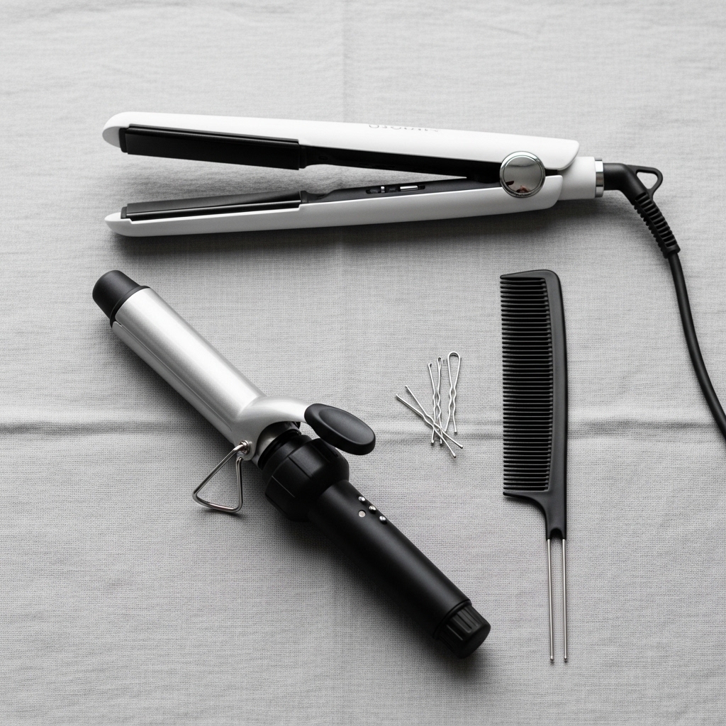 You don’t need a salon full of tools, but two are worth the investment: a high-quality ceramic flat iron for sleek looks and a large-barrel curling wand for waves. Good tools cause less damage and give better results.
