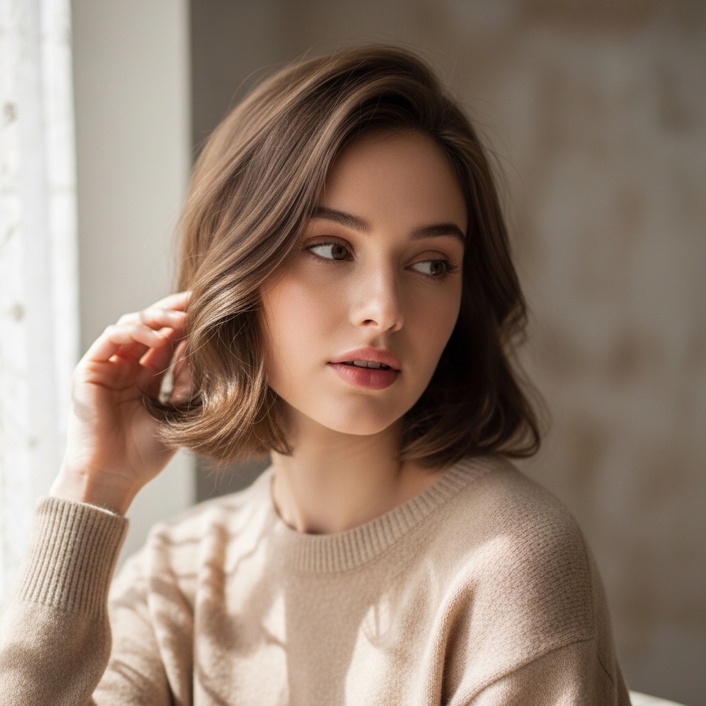 This is the hero cut of the trend. It’s a blunt or softly layered bob that hits just above the shoulders. The key is in the precision of the cut—every line is clean and intentional.