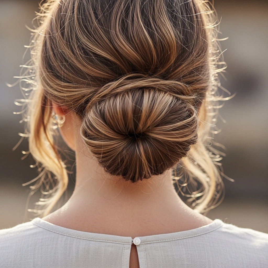 This is the ultimate “effortless” updo. It’s not a tight ballerina bun; it’s a soft, slightly loose gather at the nape of your neck. Flyaways are okay—they add to the vibe.