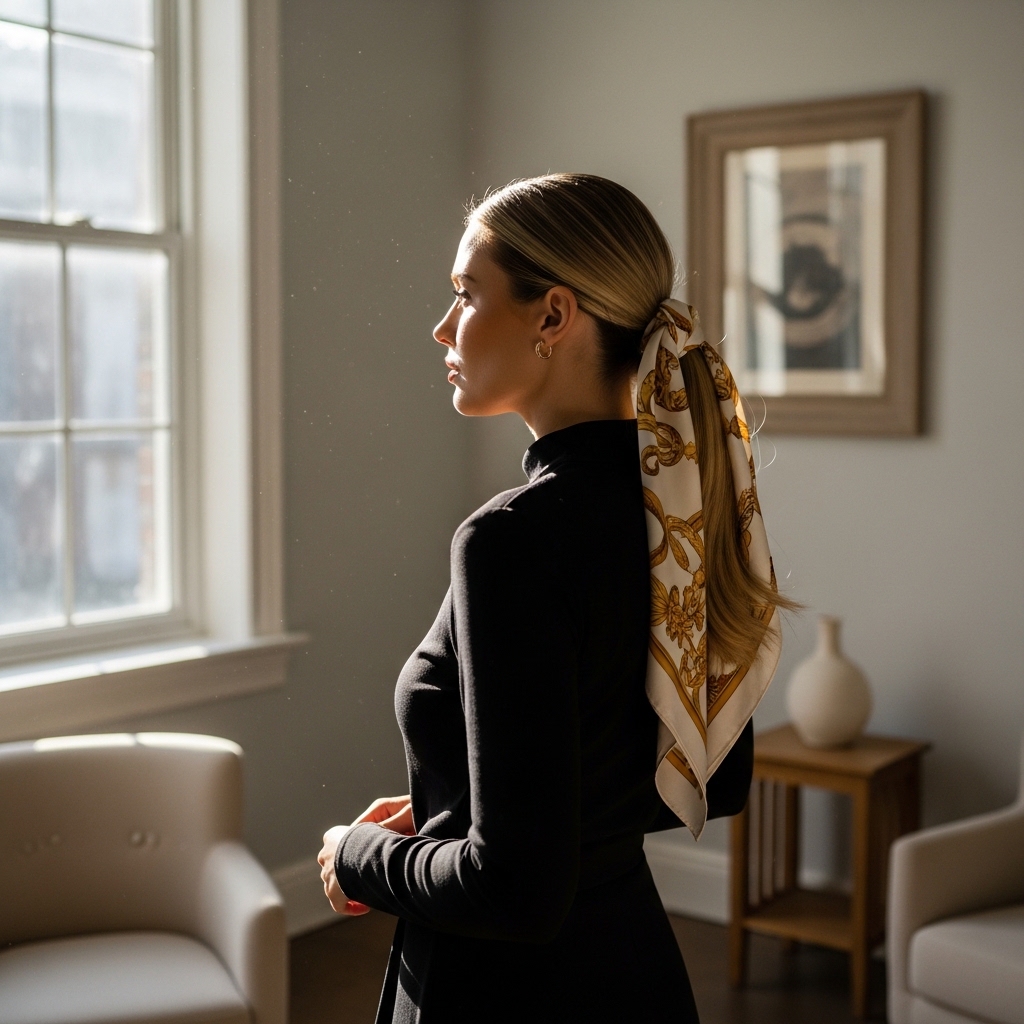 A simple silk scarf is a quiet luxury staple. It instantly makes a ponytail or a simple blowout look curated and chic. You don’t need a fancy tie—just a simple knot works.
