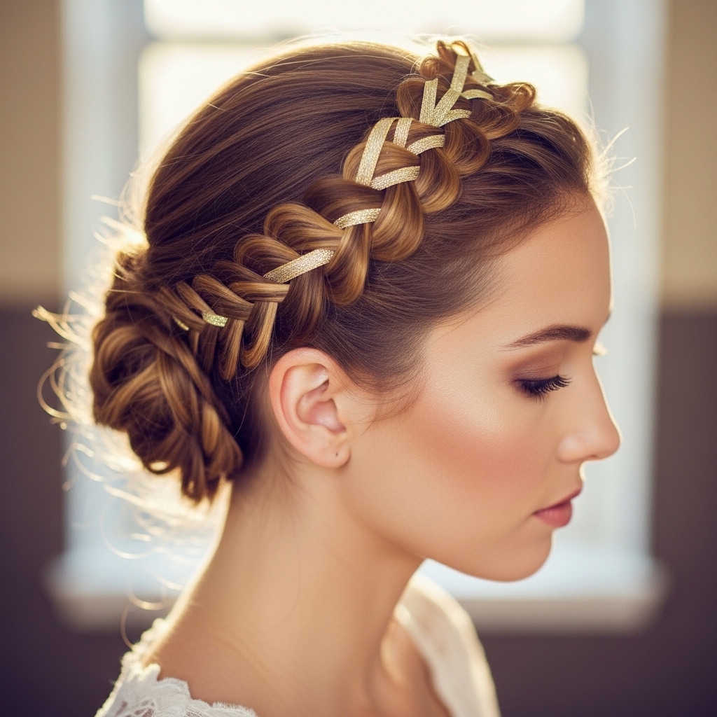 A crown braid can sometimes feel a bit bohemian. To make it luxe, incorporate a gold ribbon or a chain as you braid. Keep the braid itself neat and close to the head.