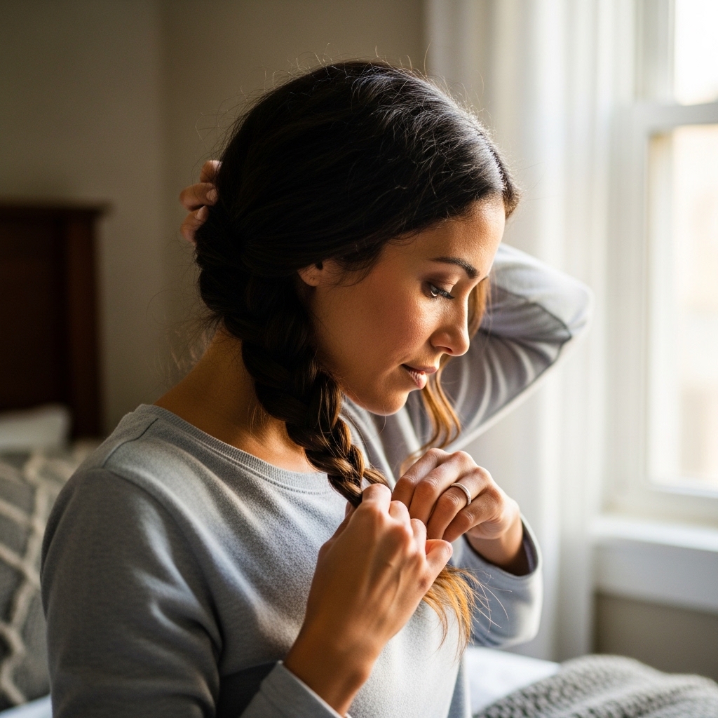 Let it fall naturally. This loose tension is what creates that romantic, soft look versus a severe, traditional braid. It should feel easy in your hands.