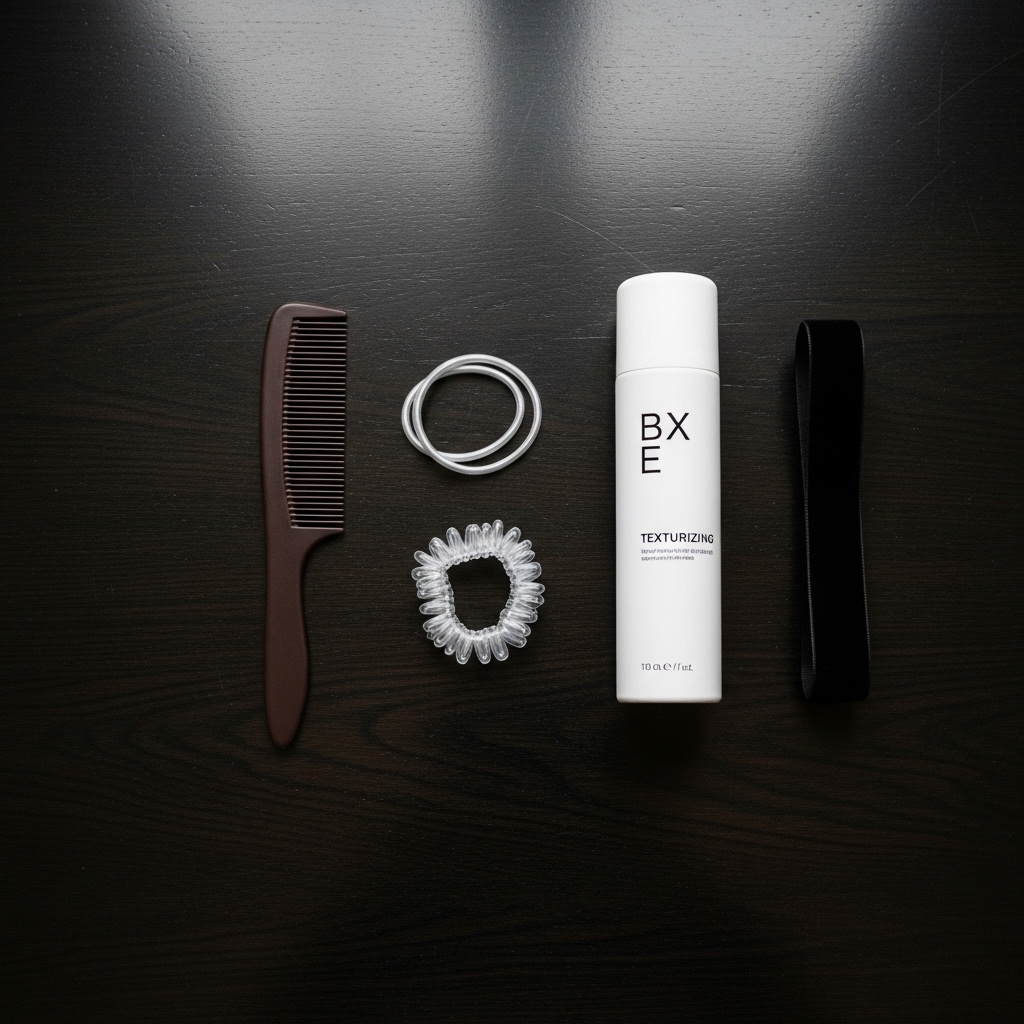 • Light-hold texturizing spray or a dry shampoo for grip.