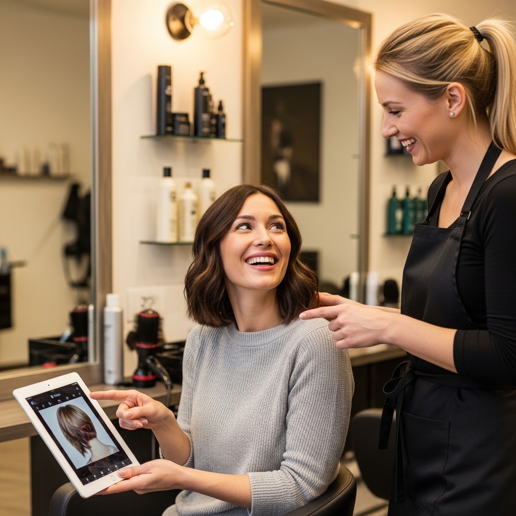 Find 2-3 photos that show the shape from the back and side. Point out what you love: “I love how this curves under at the ends,” or “I want this much movement.” A visual is worth a thousand words and ensures you and your stylist are on the same page.