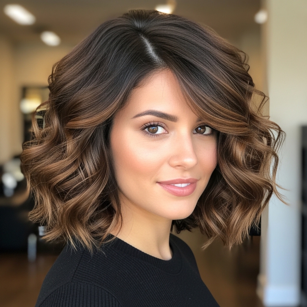 Okay, let’s talk about the haircut that’s basically a hug for your face. The rounded lob with layers is having a major moment, and for the best reason. It’s not just a haircut; it’s a feeling. It gives you that perfect blend of polished and playful, with movement that makes every head-turn feel like a scene from a movie.