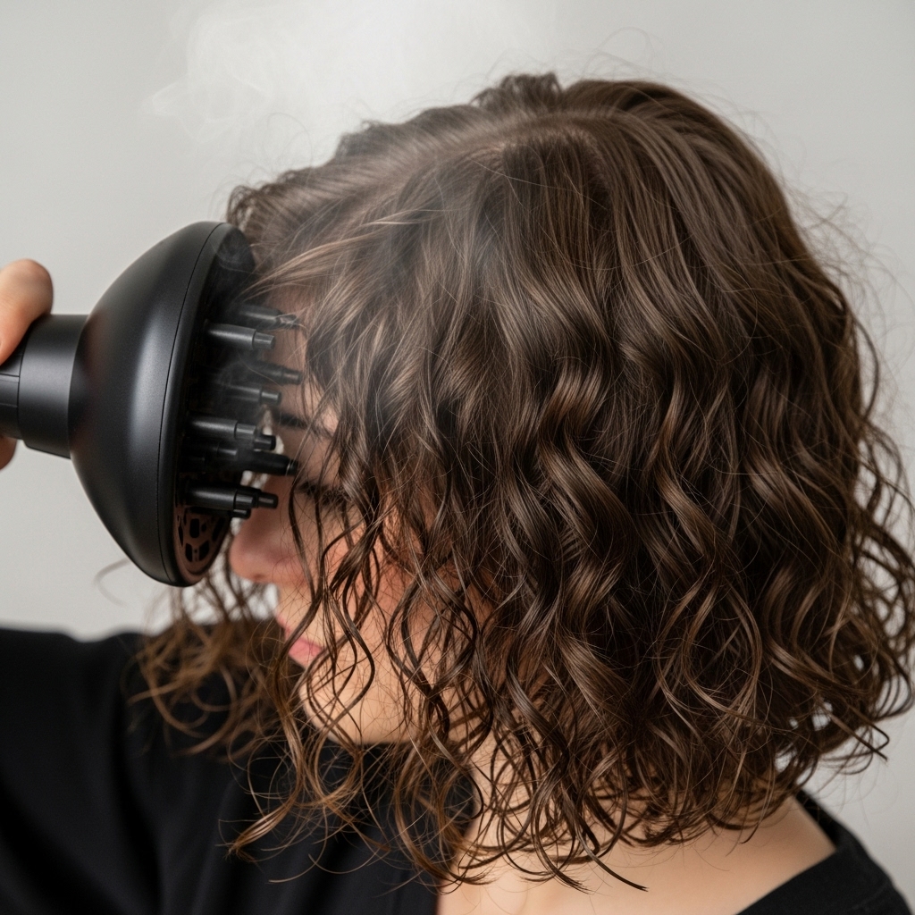 Air-drying will not achieve the Baroque Bob’s signature volume. A diffuser is non-negotiable. The goal is to dry the roots first, lifting them away from the scalp to create that coveted rounded silhouette.
